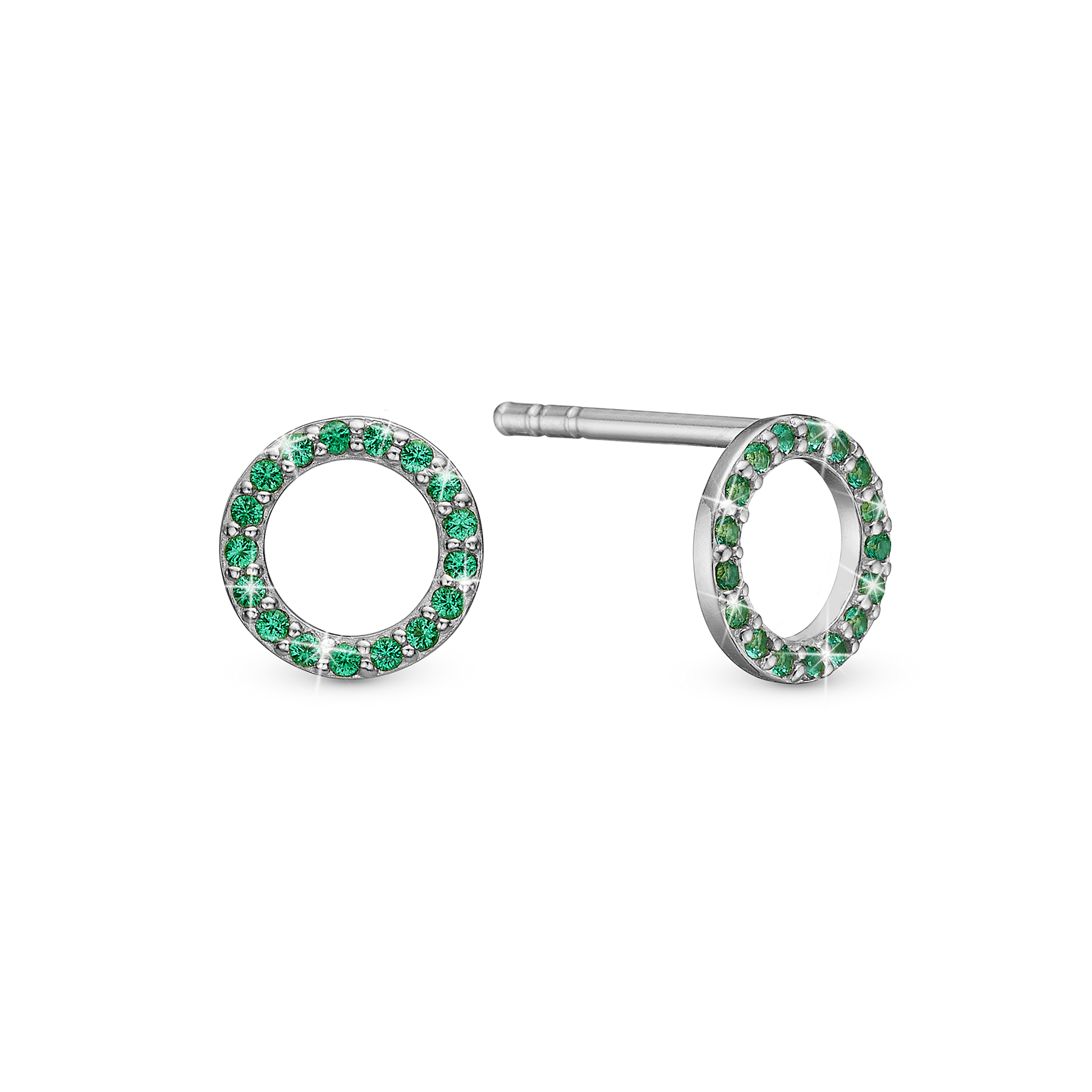 Green Circles Stud Earrings - Sterling Silver with 36 Greenne Cubic Zirkonia