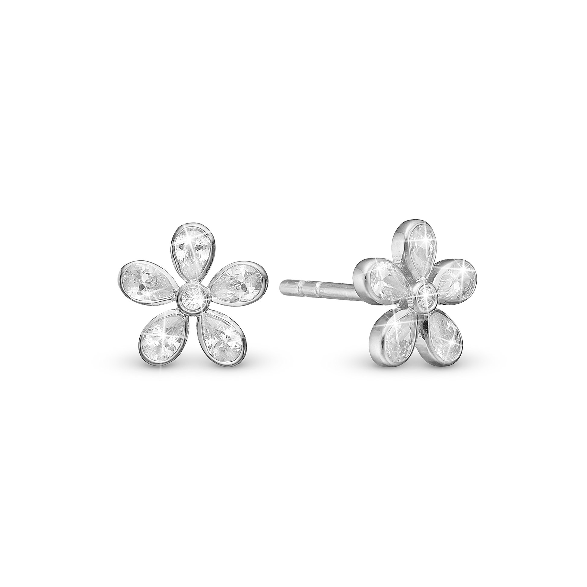Magic white Flower Stud Earrings - Sterling Silver with 12 white Cubic Zirkonia