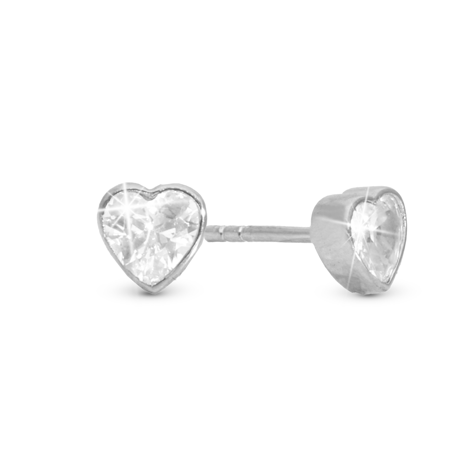 Sparkling Love Stud Earrings - Polished Sterling Silver with 2 white Cubic Zirkonia