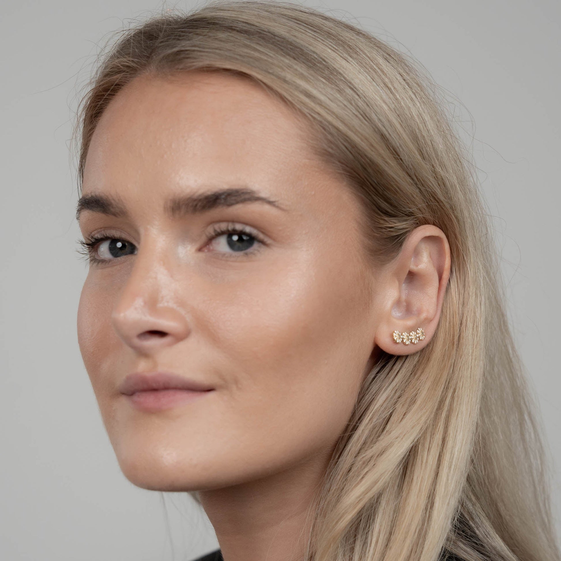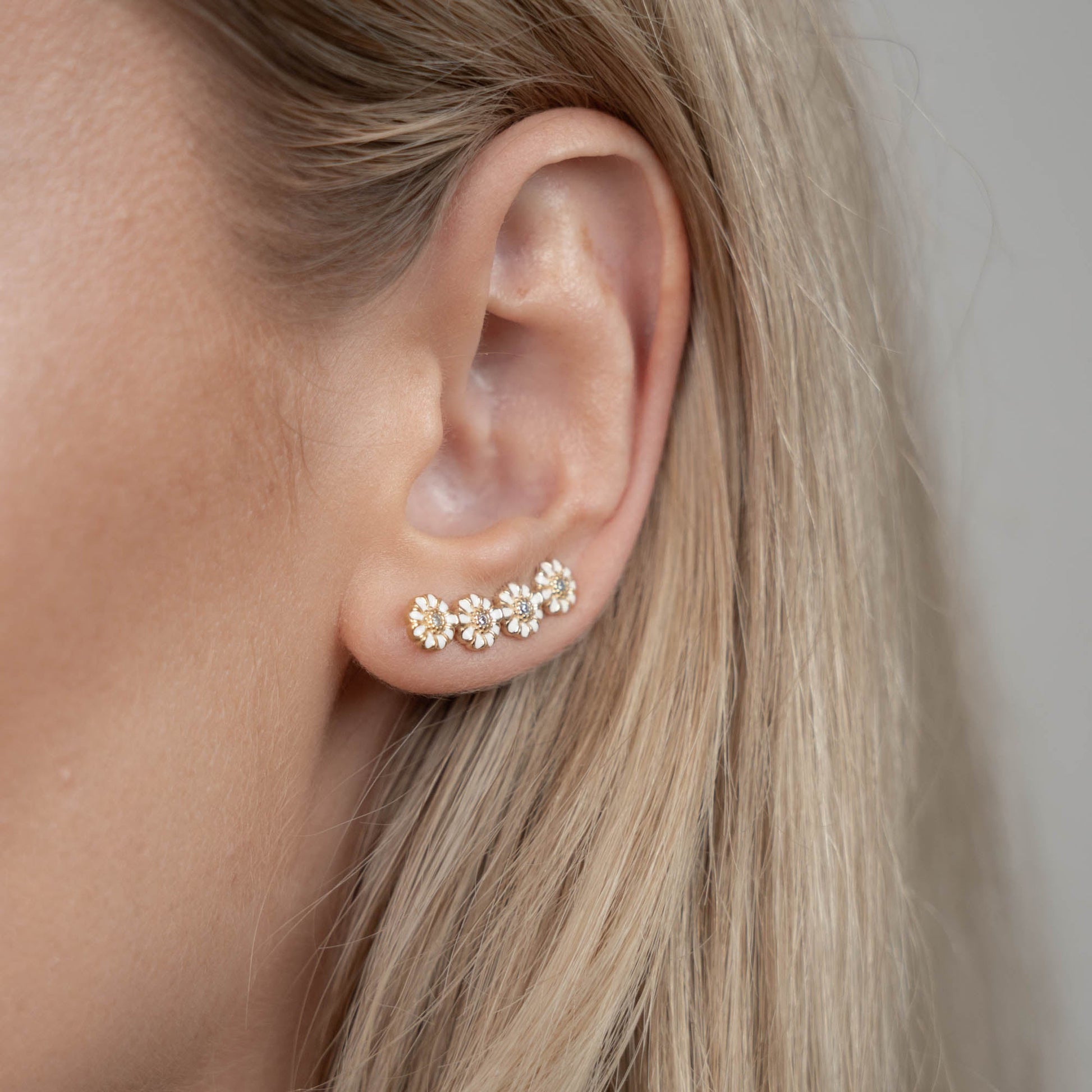 Long Marguerites Crawlers - Polished Gold Plated Sterling Silver with 10 white Topas