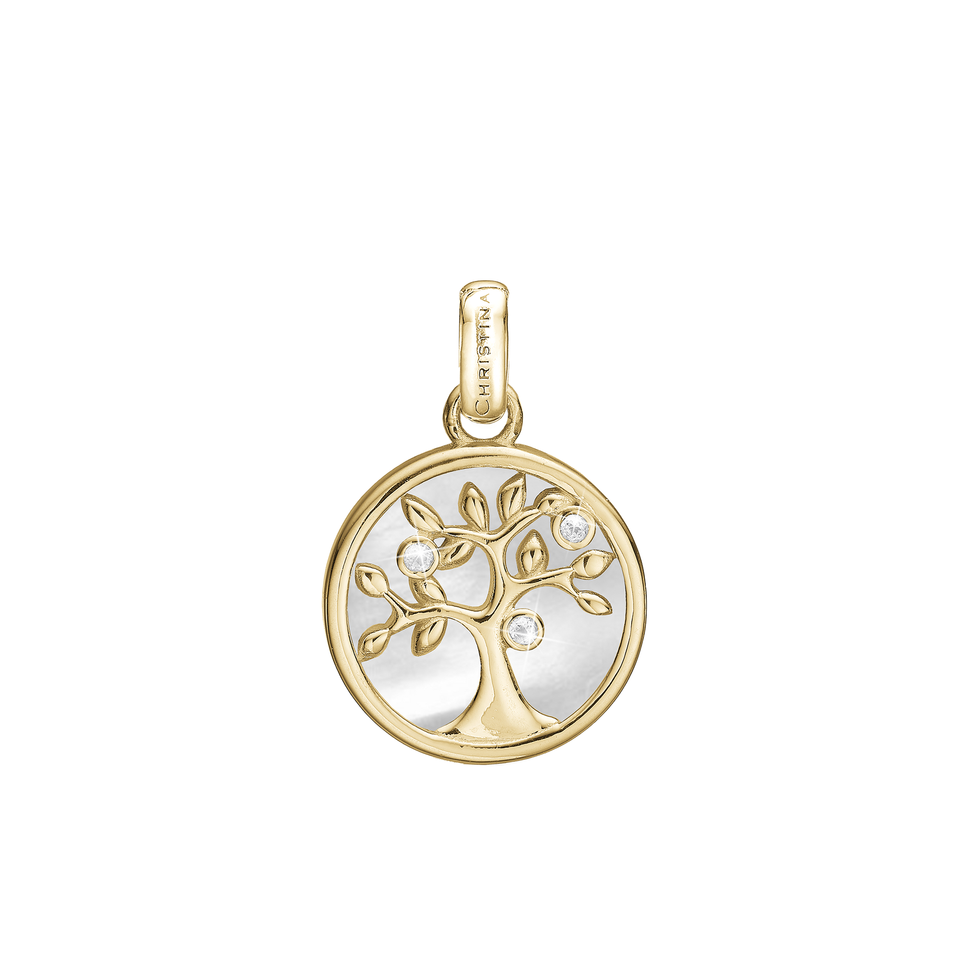 Tree of Life perlemor Earring Pendant - Polished Gold Plated Sterling Silver with 3 white Cubic Zirkonia