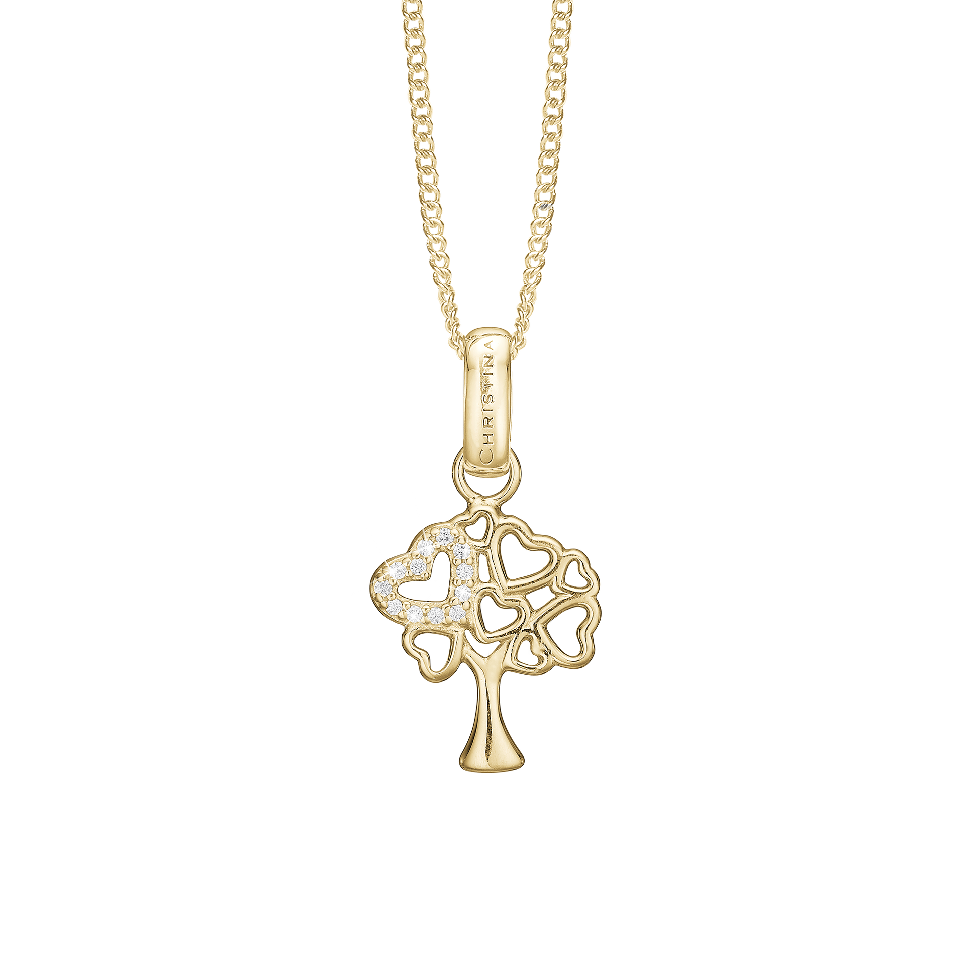 Tree of Hearts Earring Pendant - Polished Gold Plated Sterling Silver with 12 white Cubic Zirkonia