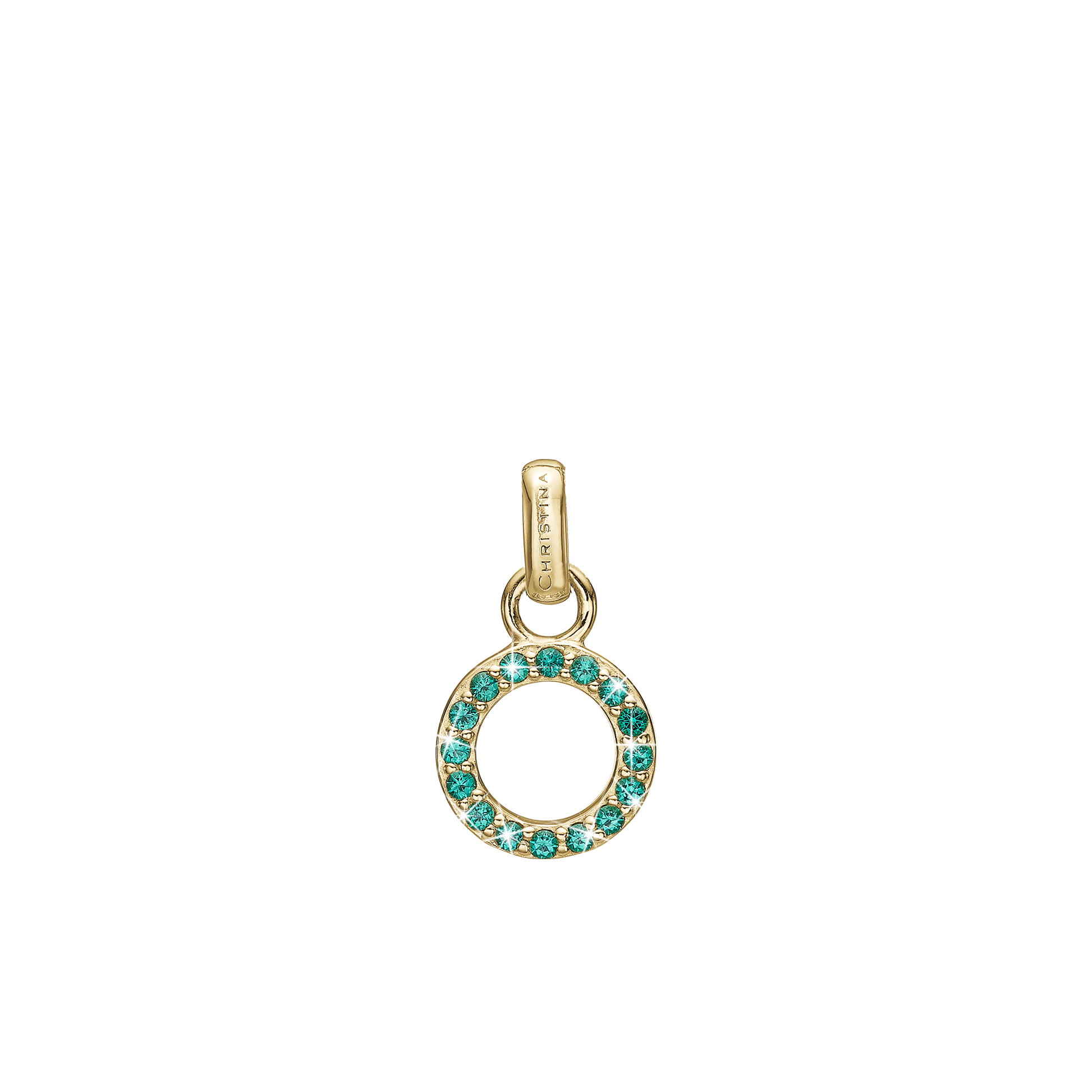 Green CZ circle Earring Pendant - Gold Plated Sterling Silver with 16 Greenne Cubic Zirkonia