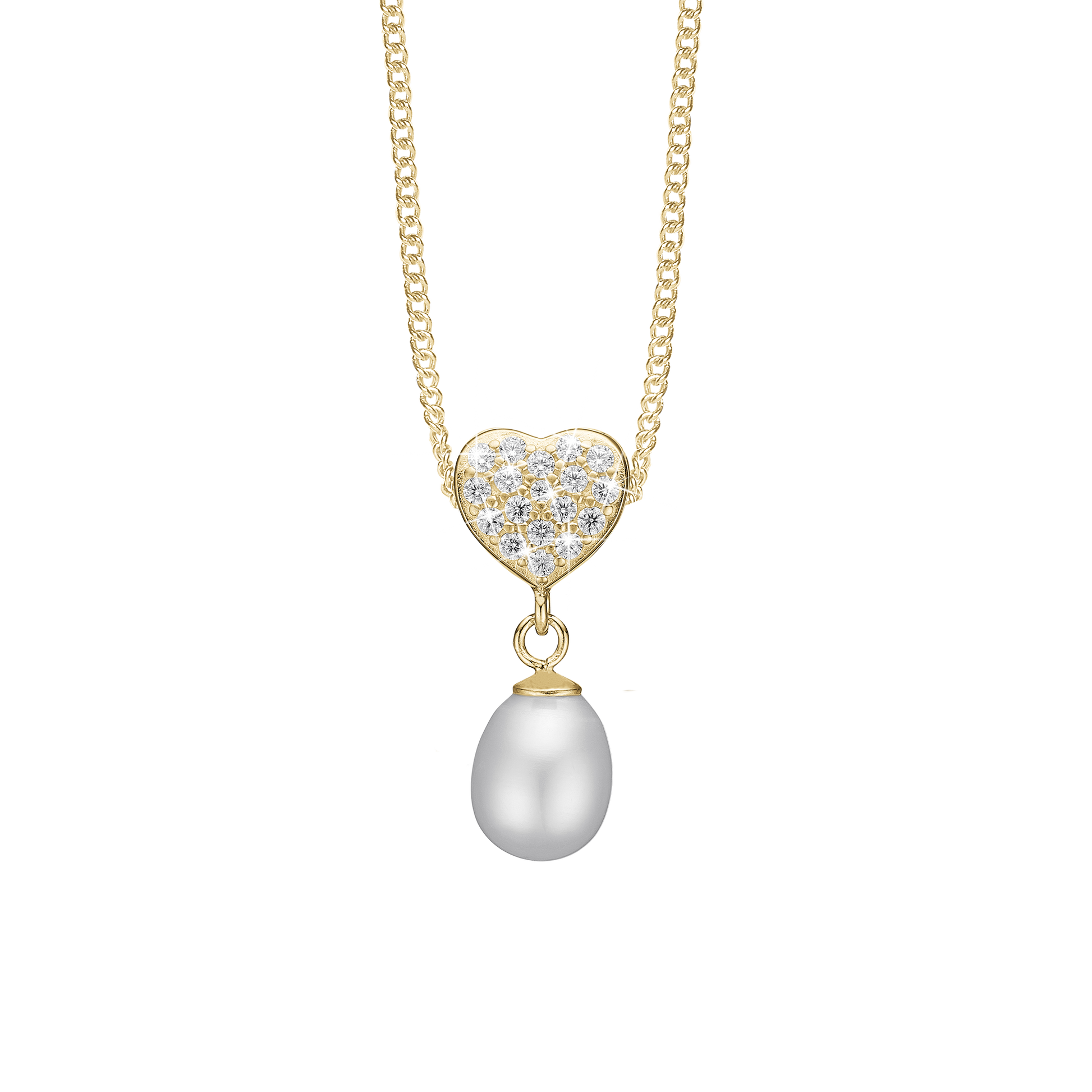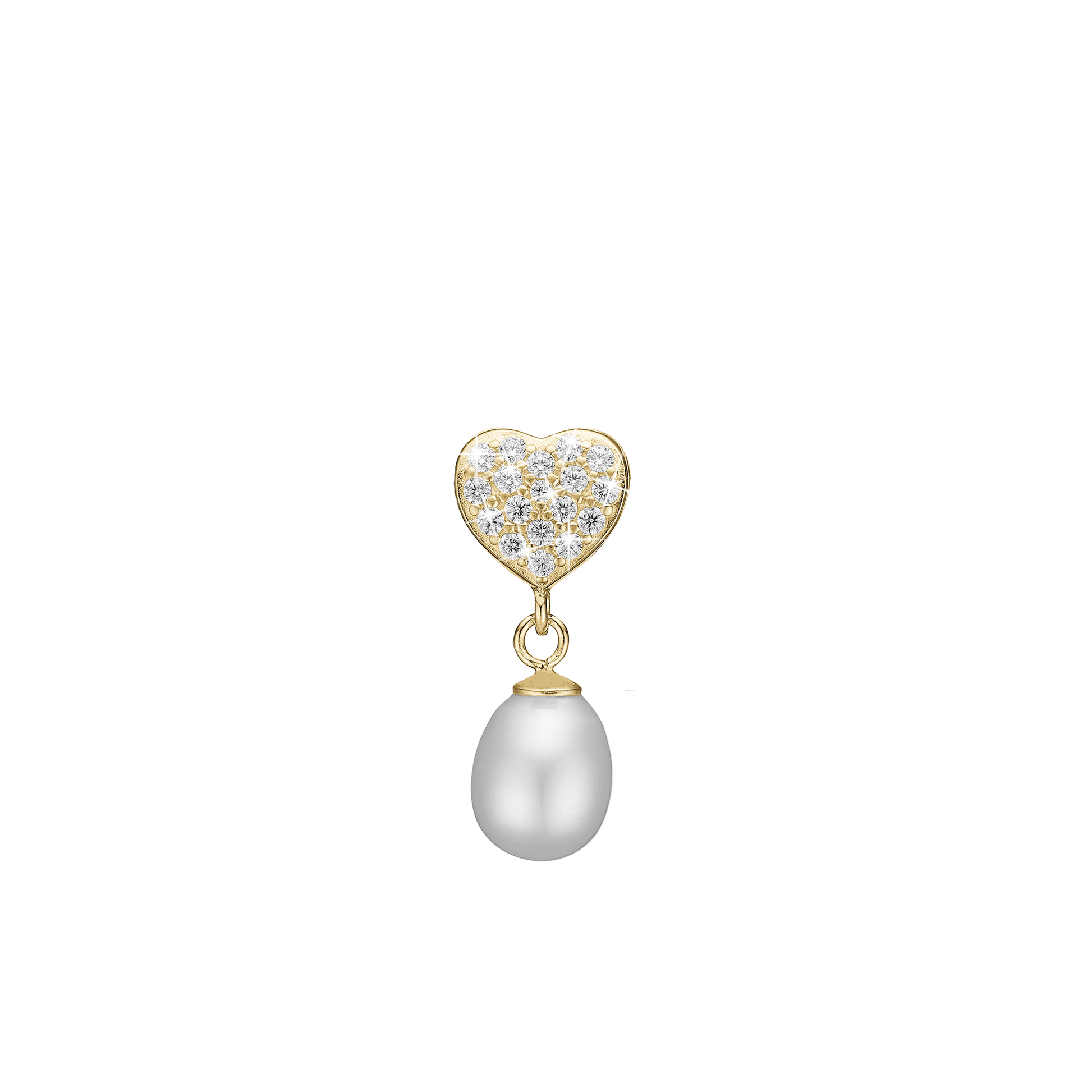 Sparkling Heart Earring Pendant - Gold Plated Sterling Silver with 14 white Cubic Zirkonia og 1 Ferskvandsperle