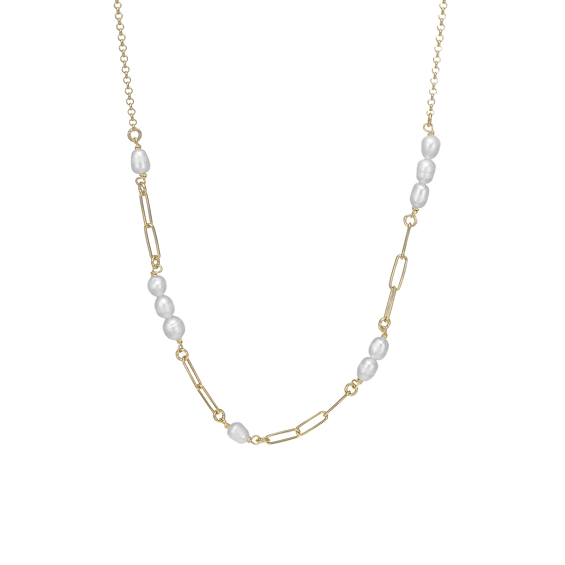 Links and Pearls Necklace - Gold Plated Sterling Silver with 10 white Ferskvandsperler