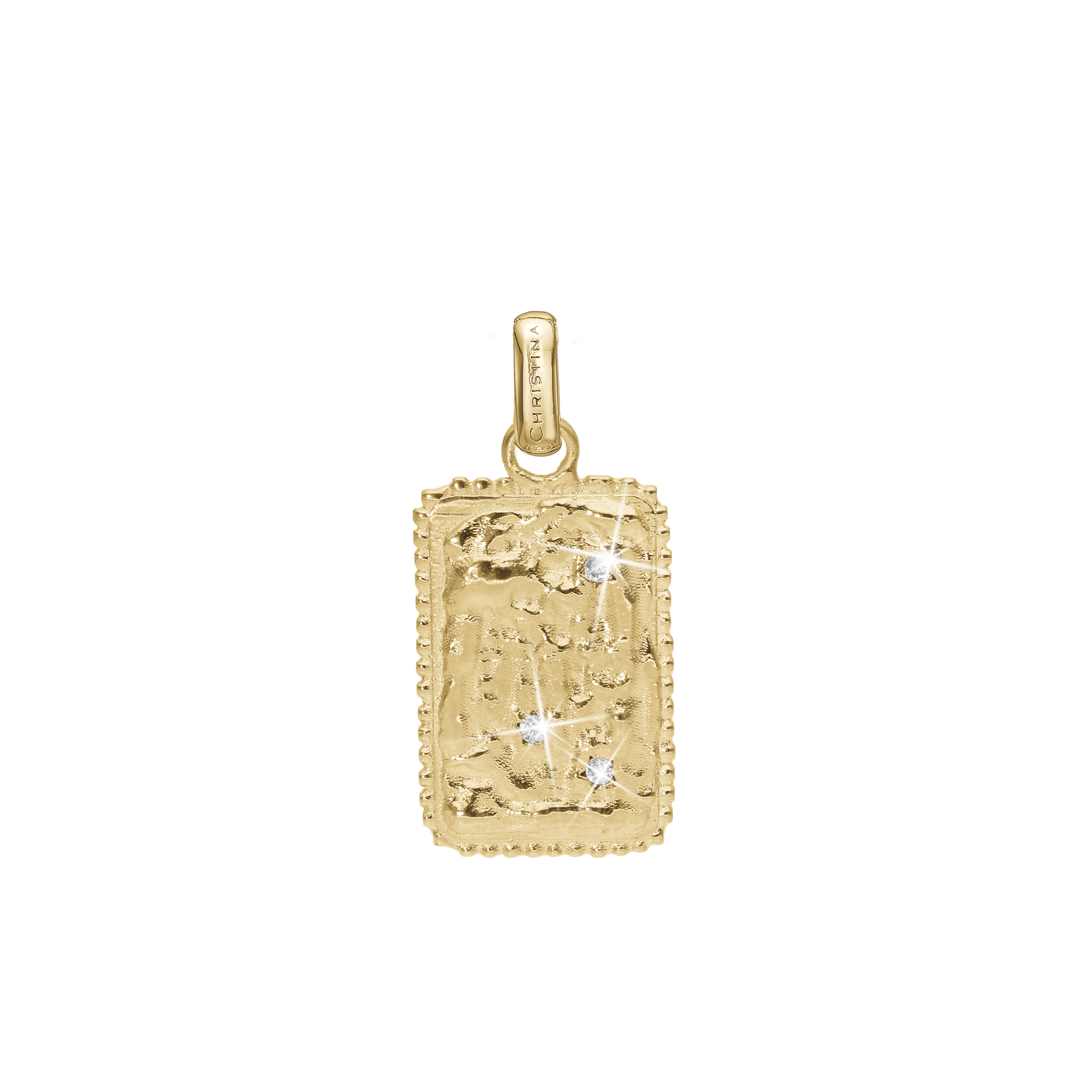 Antique square Large Earring Pendant - Polished Gold Plated Sterling Silver with 3 white Cubic Zirkonia