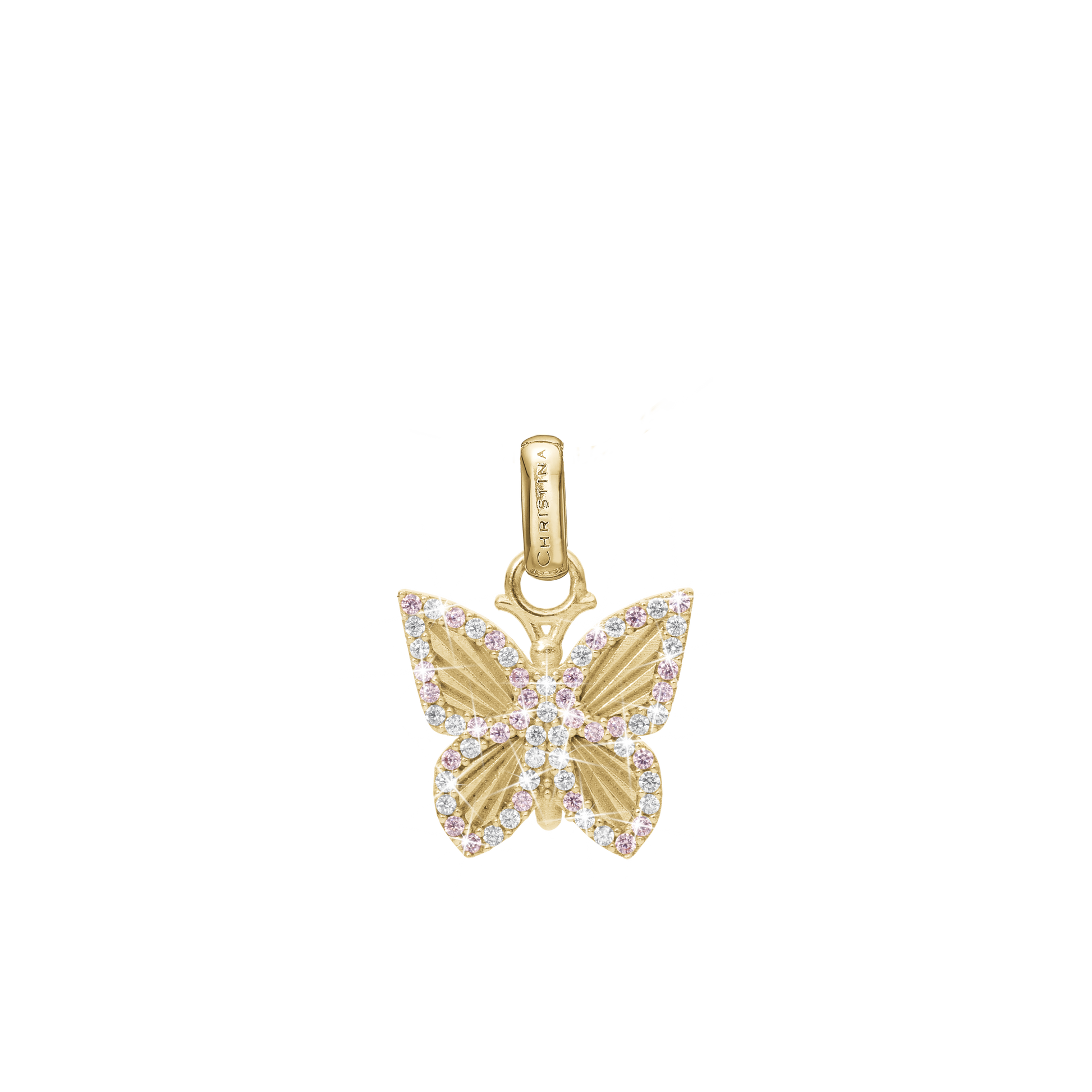 Pretty Butterfly Earring Pendant - Polished Gold Plated Sterling Silver with 32 Pinke Cubic Zirkonia