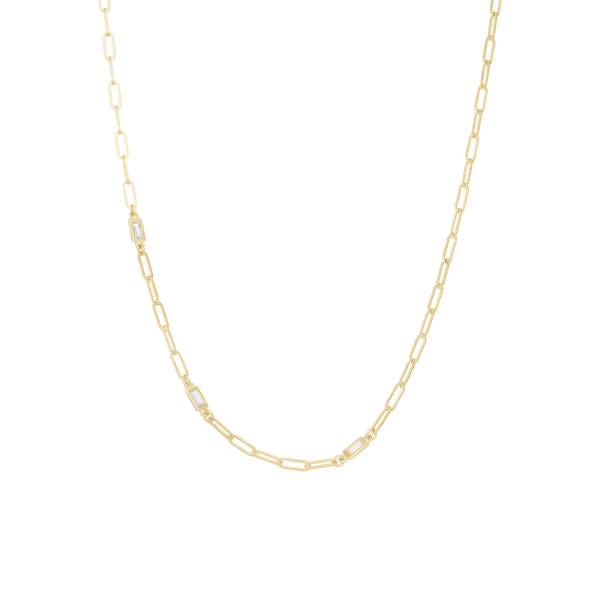 Shiny Links Necklace - Polished Gold Plated Sterling Silver with 3 white Cubic Zirkonia