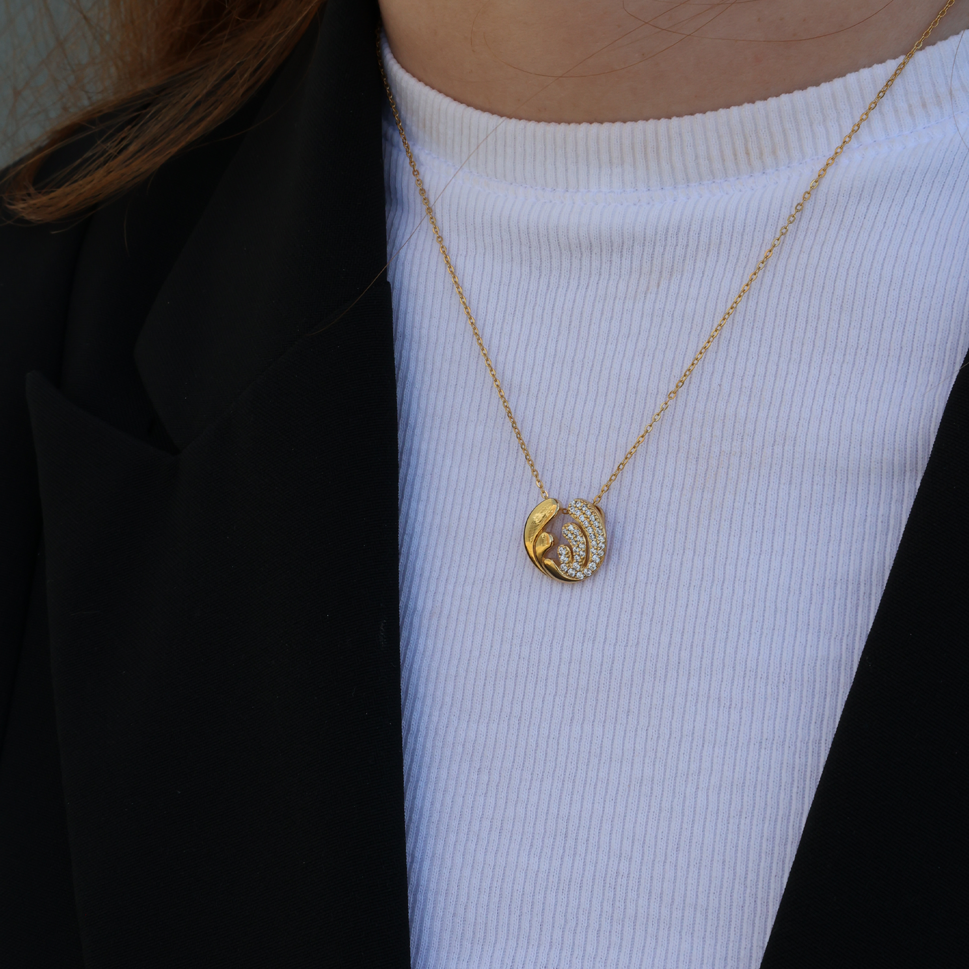 Ocean Splash Earring Pendant - Polished Gold Plated Sterling Silver with 37 Cubic Zirkonia
