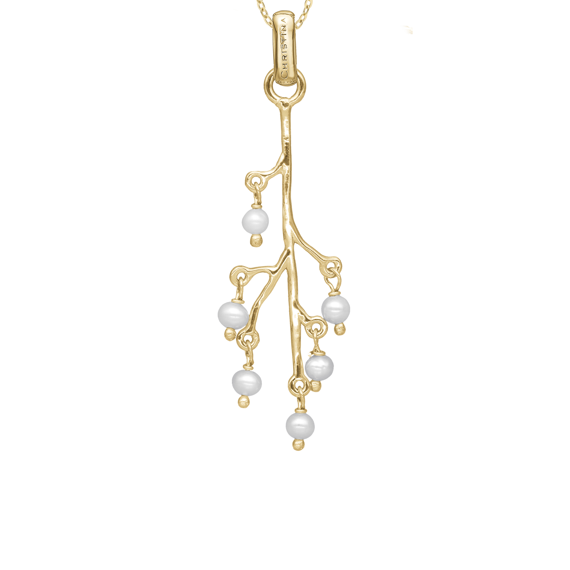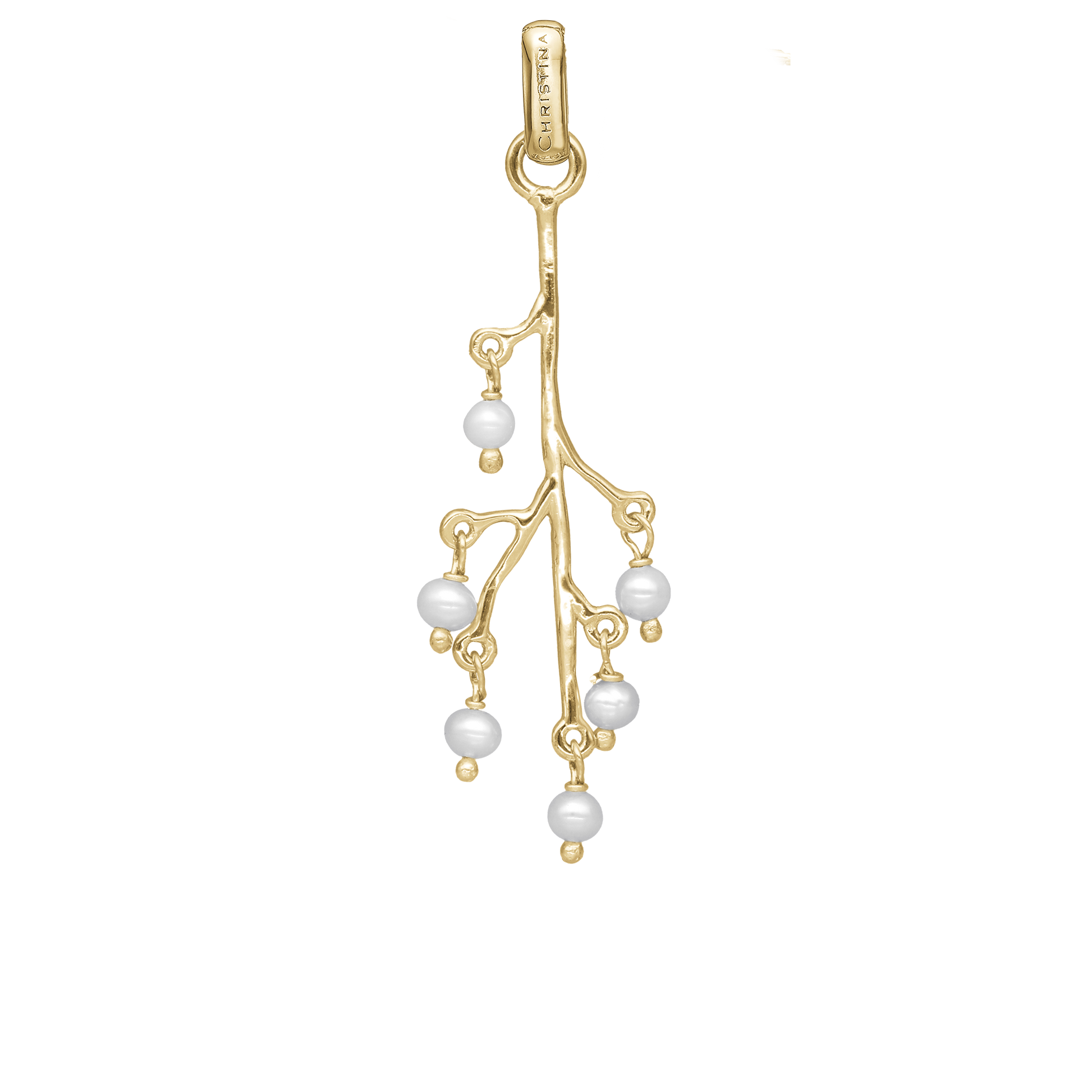 Cherry Tree Earring Pendant - Polished Gold Plated Sterling Silver with 6 Ferskvandsperler