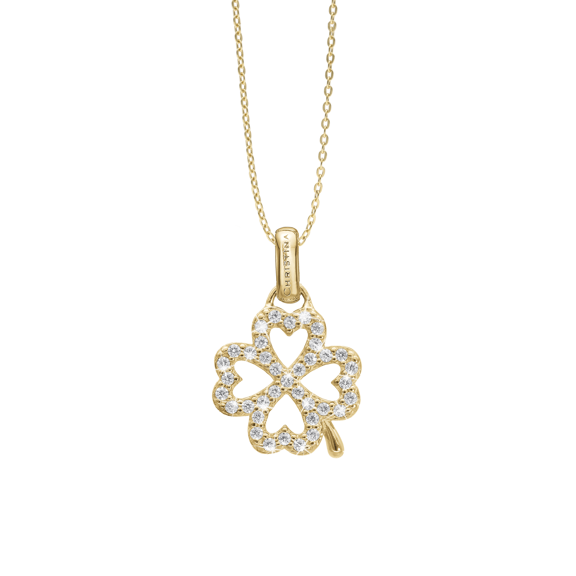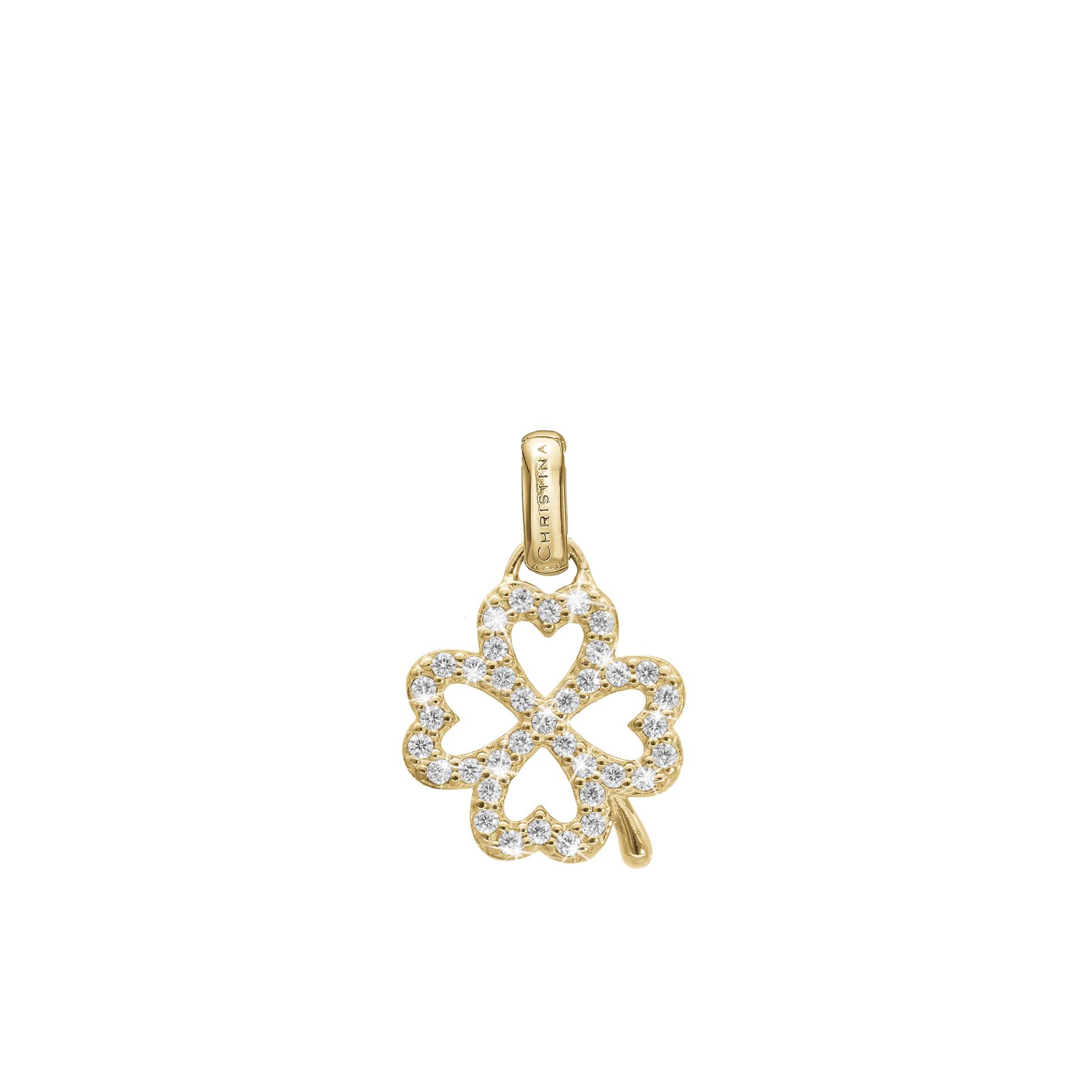 Shimmery Clover Earring Pendant - Polished Gold Plated Sterling Silver with 37 Cubic Zirkonia