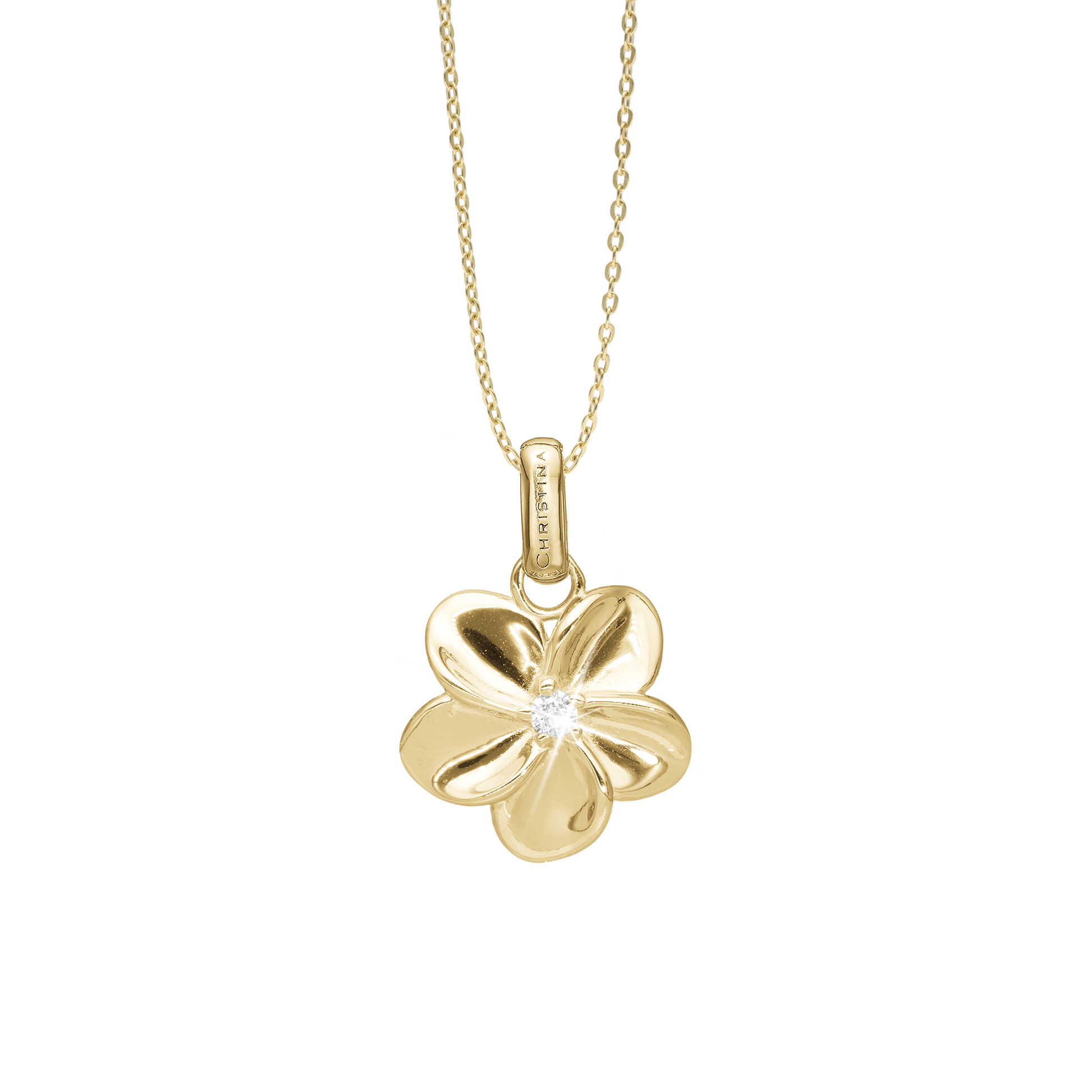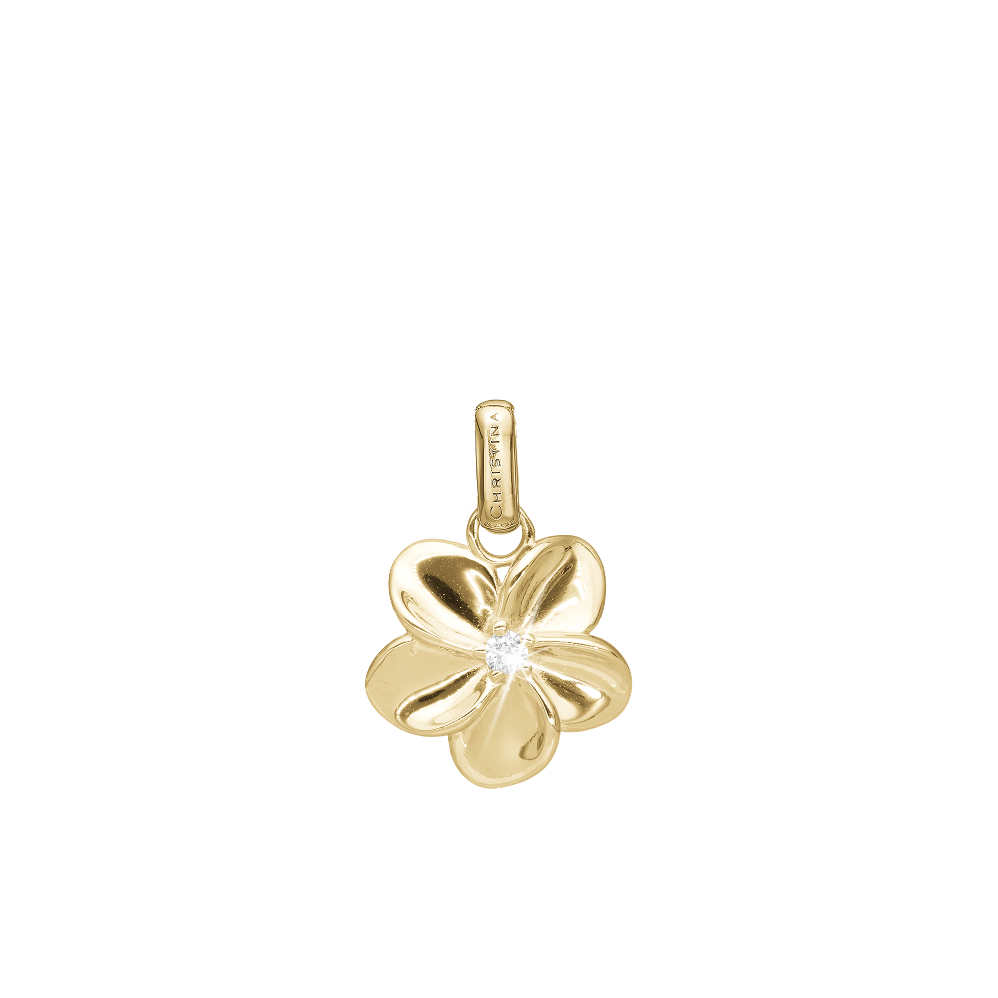 Flower Bouquette Earring Pendant - Polished Gold Plated Sterling Silver with 1 Cubic Zirkonia