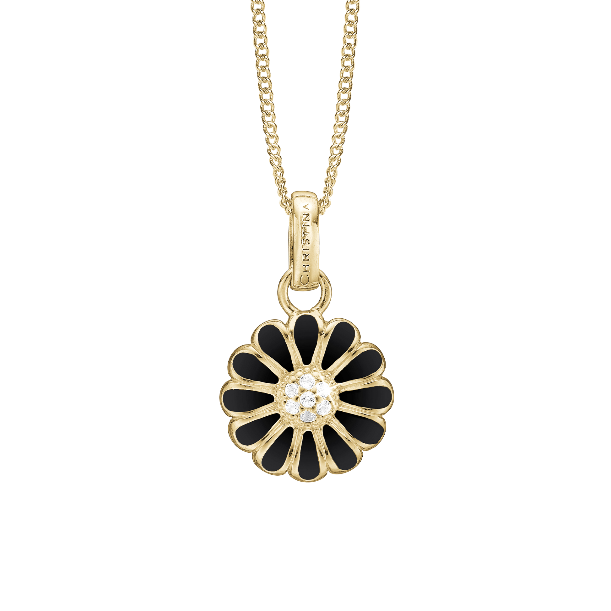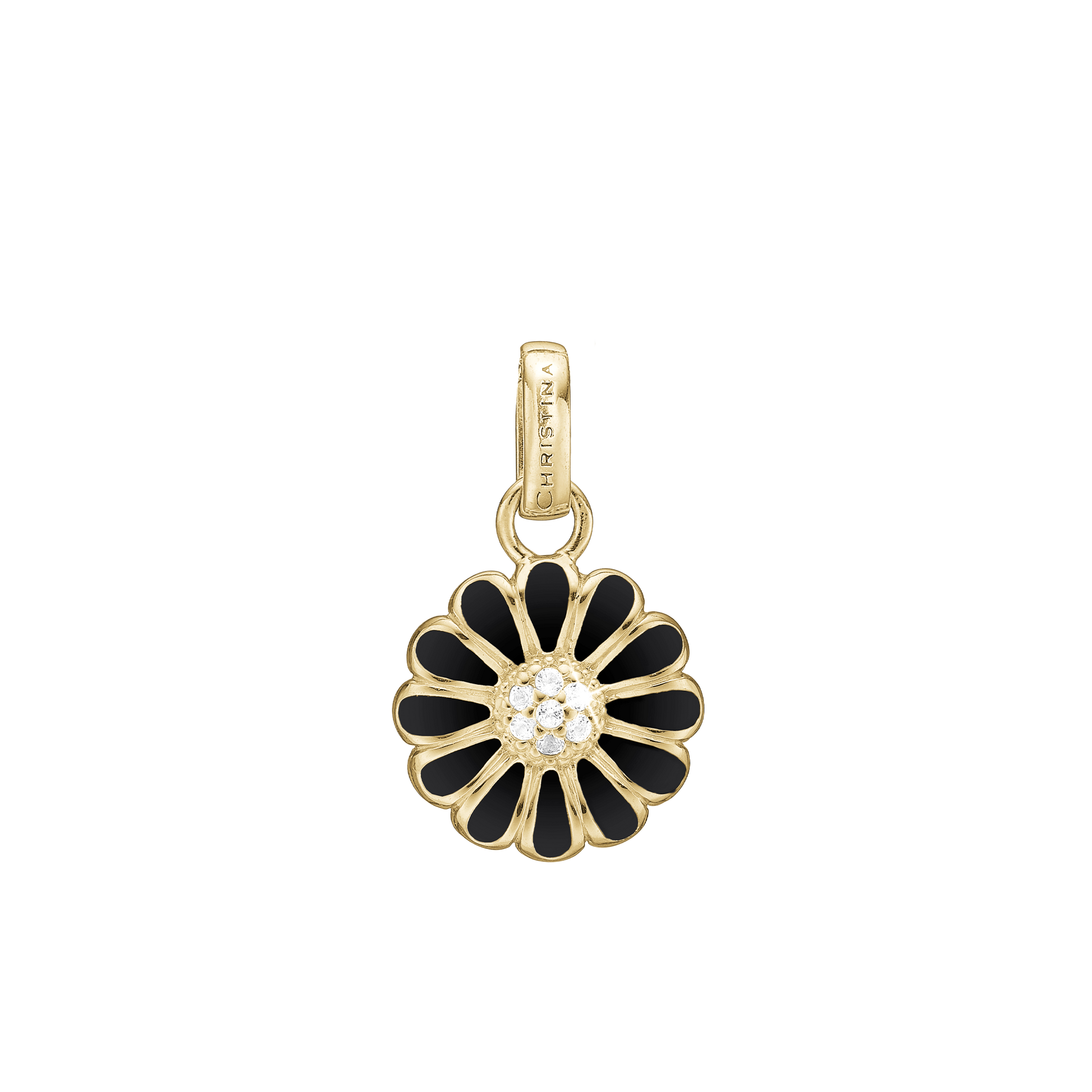 16 mm Black Marguerite Earring Pendant - Gold Plated Sterling Silver