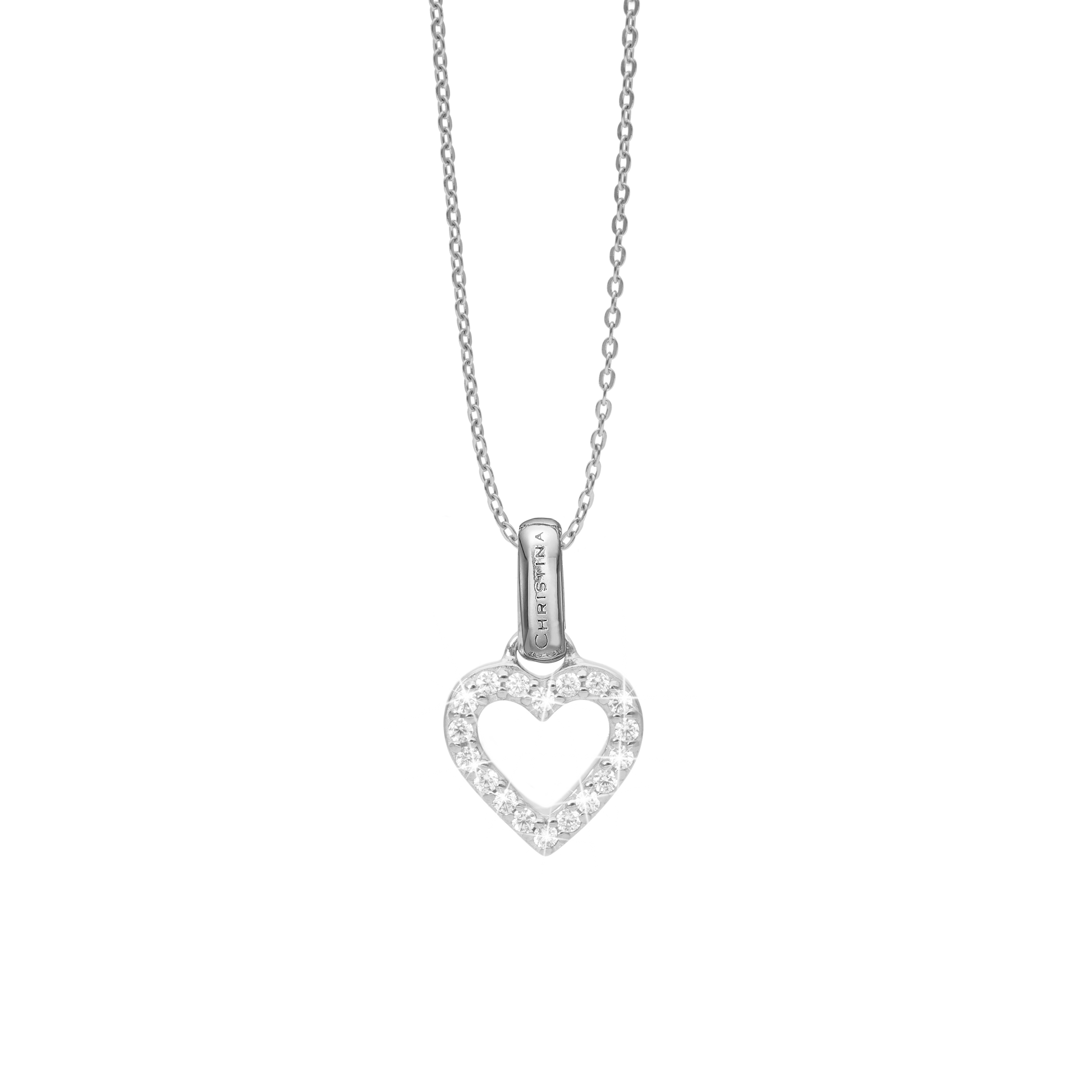 Shimmery Heart Earring Pendant - Polished Sterling Silver with 18 white Cubic Zirkonia