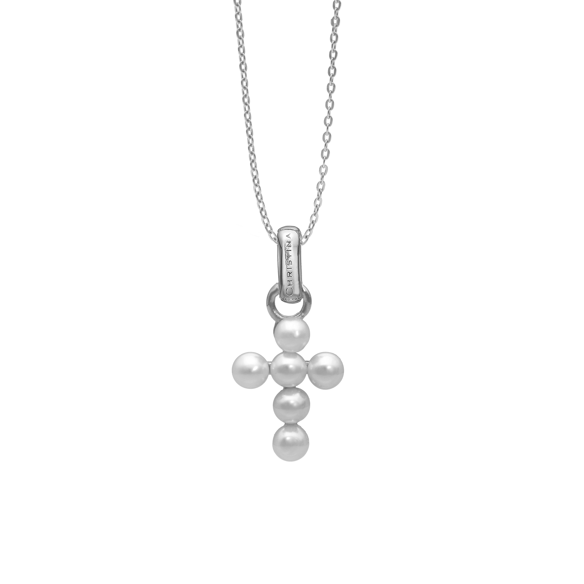 Pearl Cross Earring Pendant - Polished Sterling Silver with 6 Ferskvandsperler