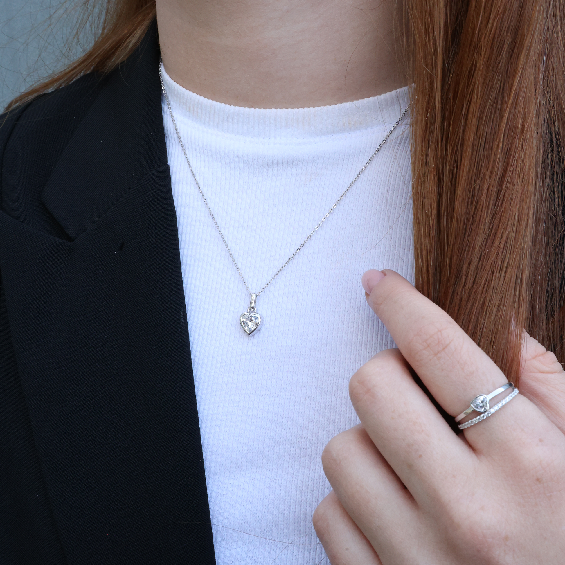 Sparkling Love Earring Pendant - Polished Sterling Silver with 1 Cubic Zirkonia