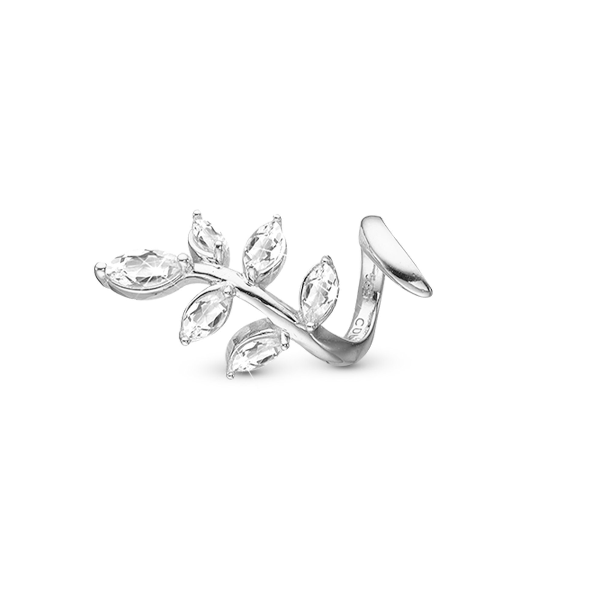 Leaf Twist Charm 6 mm for Classic Leather Bracelet - White Gold 14 karat with 6 Topas