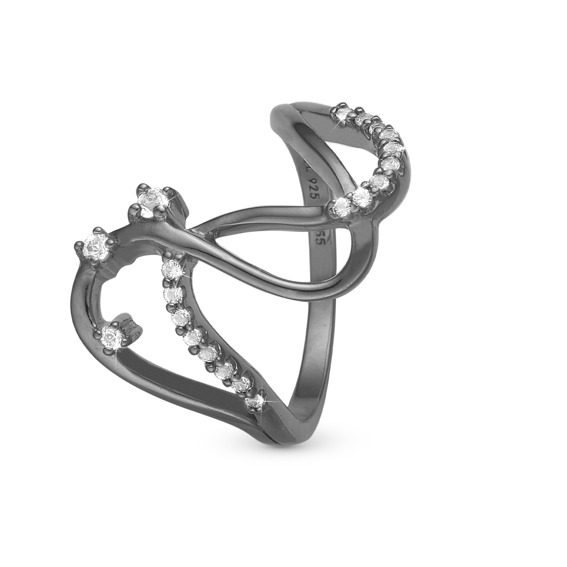 Energy Love Ring - Polished Ruthenium Plated with 20 white Topas