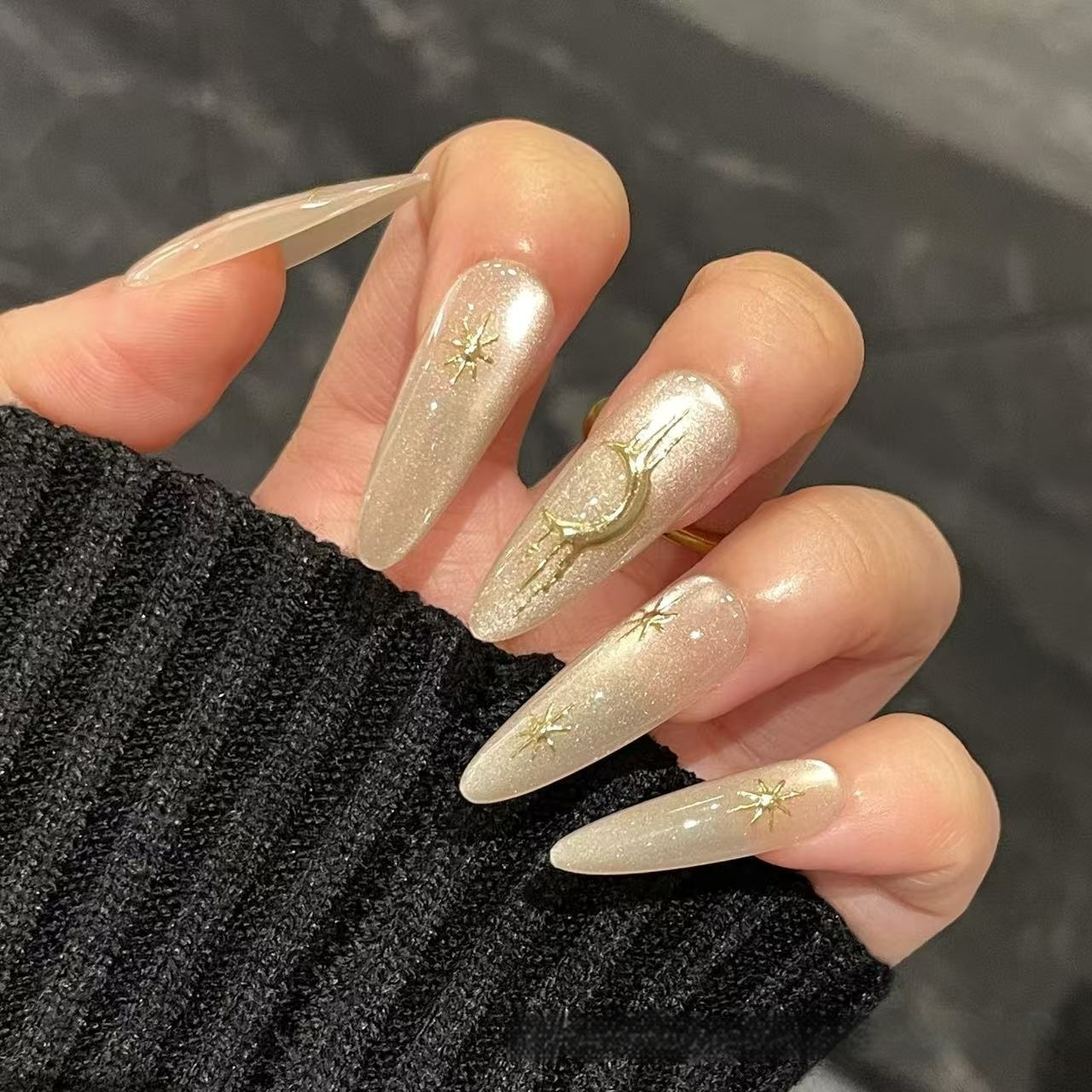Product information: Pattern: starry sky Color: JY1 gold Specification size: 30 pieces M,30 pieces S,10 pieces kit XS,10 pieces kit S,10 pieces kit M Weight: 6g Style: french, simple