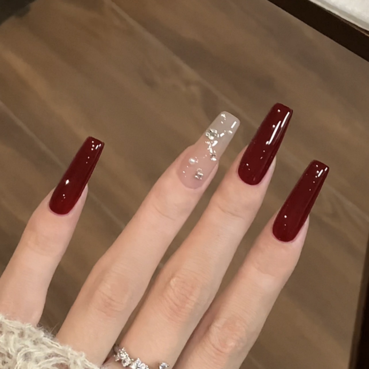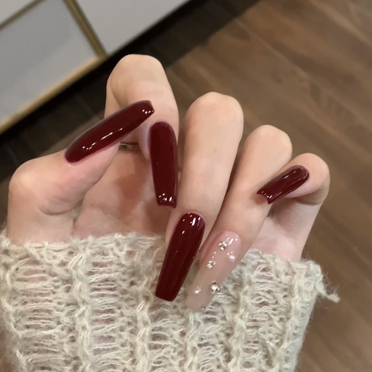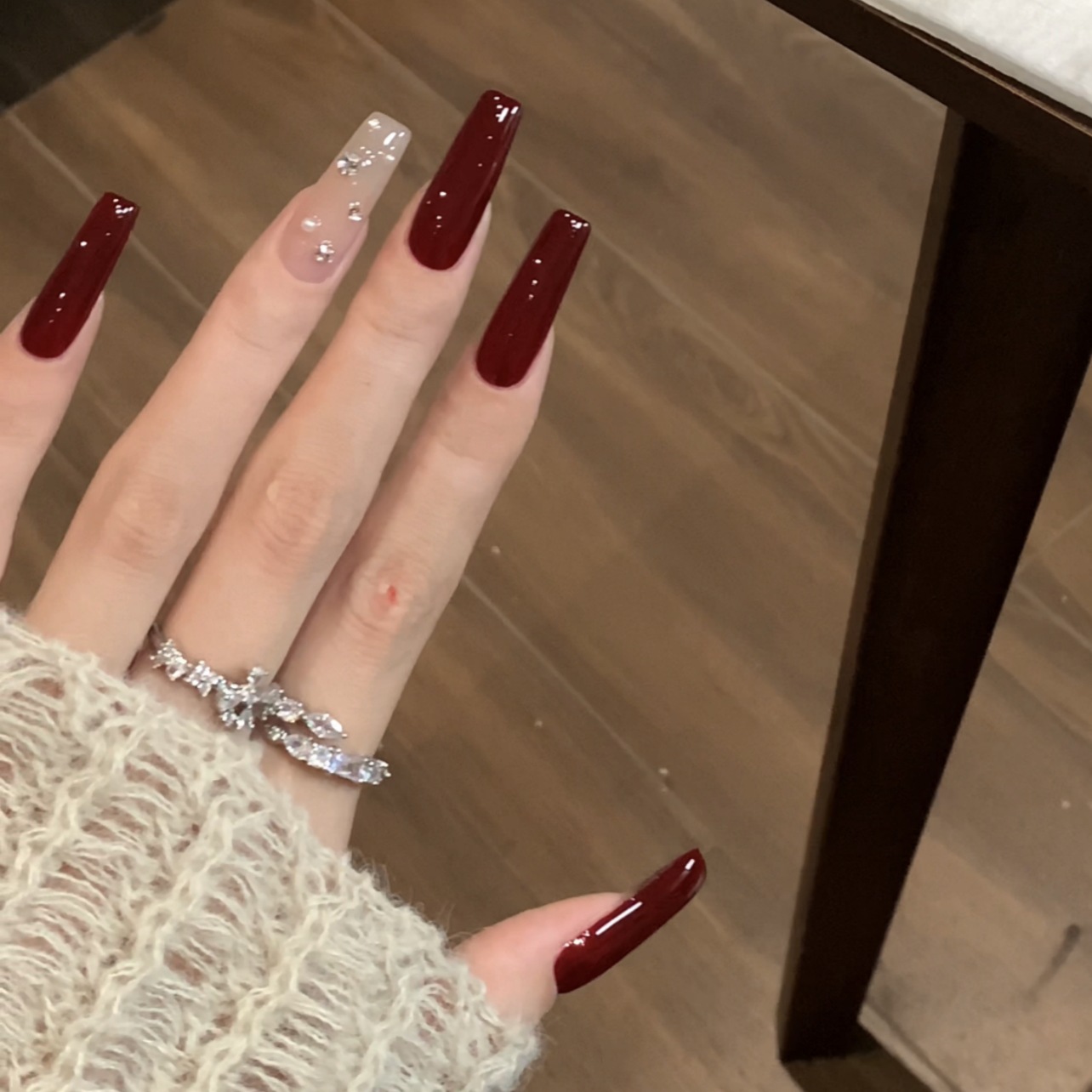 Color: lengthened T temperament wine red pile style diamond, lengthened T pure wine red simple